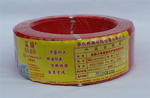 产品名称:万桥 BV阻燃铜芯电电线1.5红